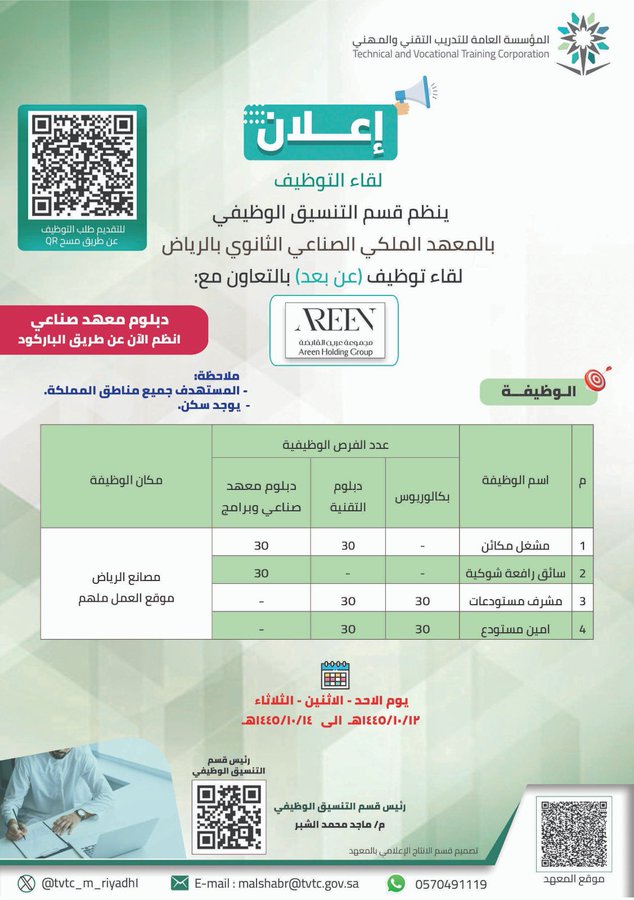 المعهد الملكي الصناعي الثانوي بالرياض يعلن عن توفر 210 وظيفة من خلال ملتقى التوظيف (عن بعد) وذلك حسب التفاصيل الموضحة أدناه:-